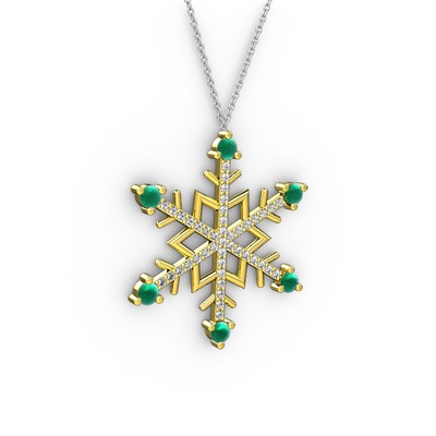 Kök zümrüt ve beyaz zirkon 18 ayar altın kolye (40 cm beyaz altın rolo zincir)