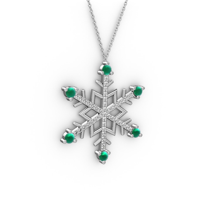 Kök zümrüt ve beyaz zirkon 18 ayar beyaz altın kolye (40 cm beyaz altın rolo zincir)