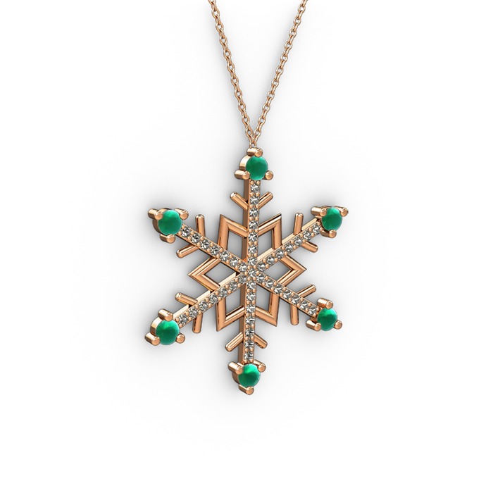 Kök zümrüt ve dumanlı kuvars 18 ayar rose altın kolye (40 cm rose altın rolo zincir)