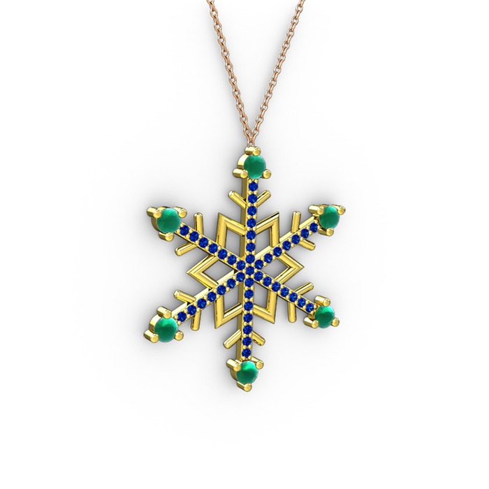 Kök zümrüt ve lab safir 14 ayar altın kolye (40 cm gümüş rolo zincir)