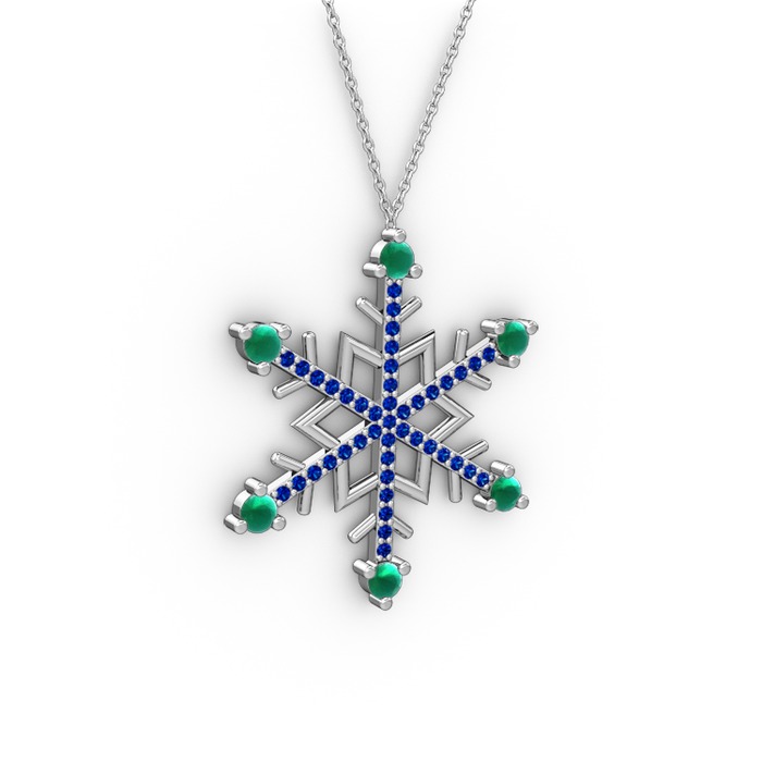 Kök zümrüt ve lab safir 14 ayar beyaz altın kolye (40 cm beyaz altın rolo zincir)