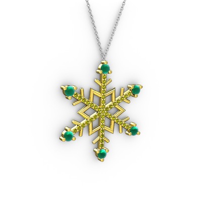 Kök zümrüt ve peridot 925 ayar altın kaplama gümüş kolye (40 cm beyaz altın rolo zincir)