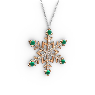 Kök zümrüt ve pırlanta 925 ayar rose altın kaplama gümüş kolye (0.473 karat, 40 cm gümüş rolo zincir)
