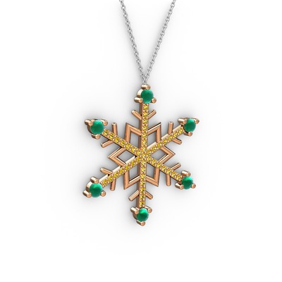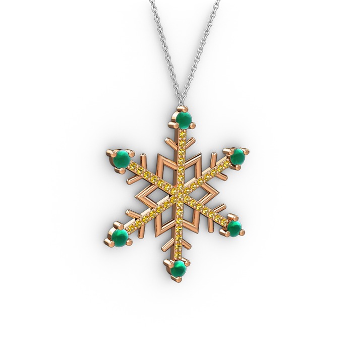 Kök zümrüt ve sitrin 8 ayar rose altın kolye (40 cm gümüş rolo zincir)