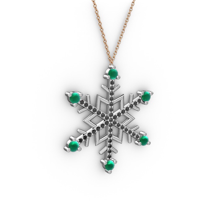 Kök zümrüt ve siyah zirkon 14 ayar beyaz altın kolye (40 cm gümüş rolo zincir)