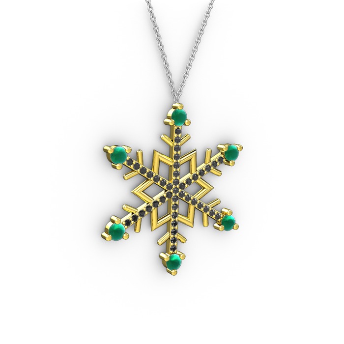 Kök zümrüt ve siyah zirkon 8 ayar altın kolye (40 cm beyaz altın rolo zincir)