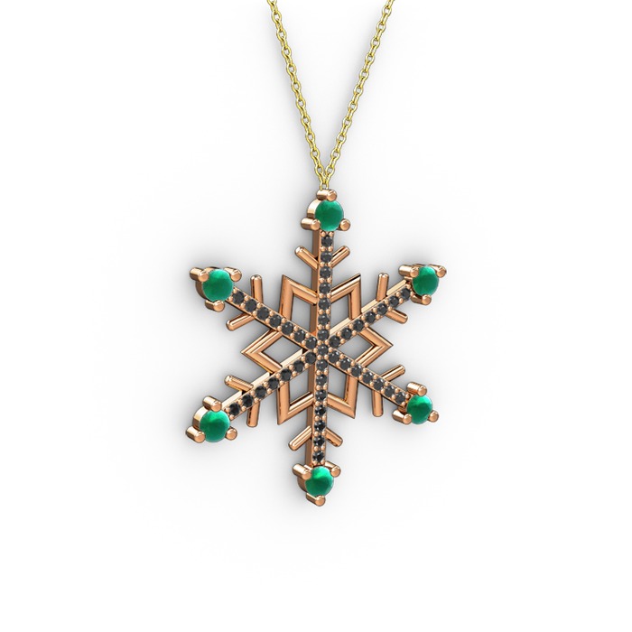 Kök zümrüt ve siyah zirkon 925 ayar rose altın kaplama gümüş kolye (40 cm altın rolo zincir)