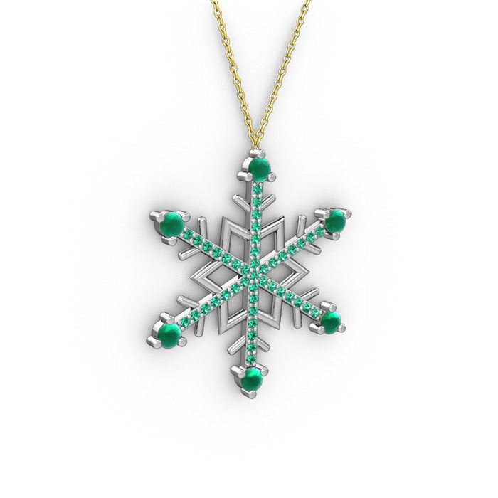 Kök zümrüt ve yeşil kuvars 18 ayar beyaz altın kolye (40 cm altın rolo zincir)