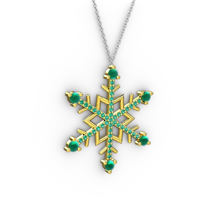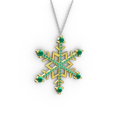 Kök zümrüt ve yeşil kuvars 8 ayar altın kolye (40 cm beyaz altın rolo zincir)