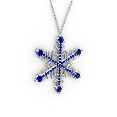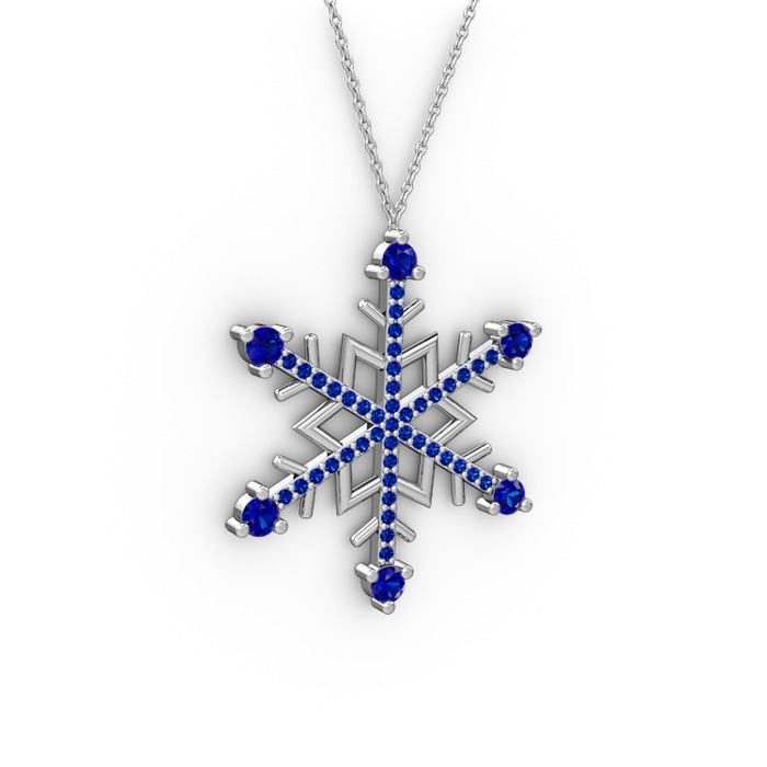 Lab safir 14 ayar beyaz altın kolye (40 cm beyaz altın rolo zincir)