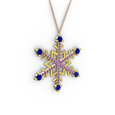Lab safir ve ametist 925 ayar altın kaplama gümüş kolye (40 cm rose altın rolo zincir)