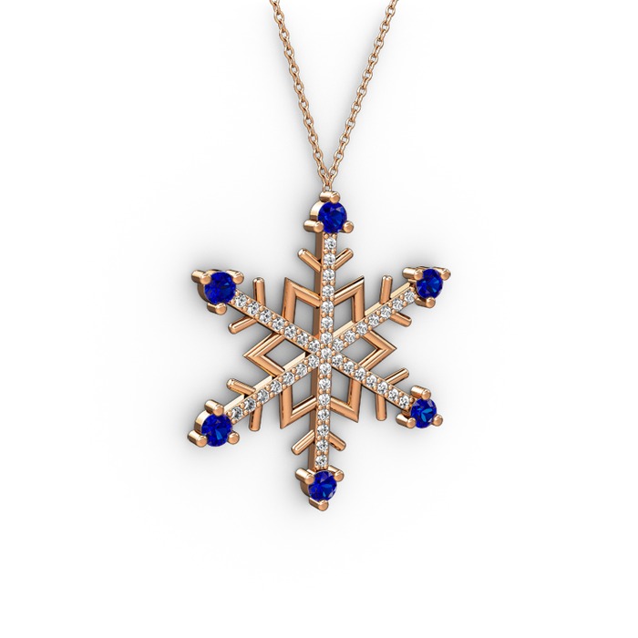 Lab safir ve beyaz zirkon 14 ayar rose altın kolye (40 cm gümüş rolo zincir)