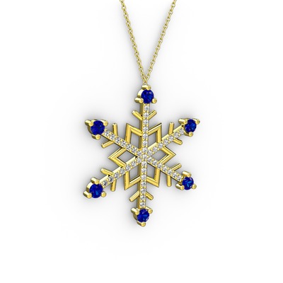 Lab safir ve beyaz zirkon 8 ayar altın kolye (40 cm gümüş rolo zincir)