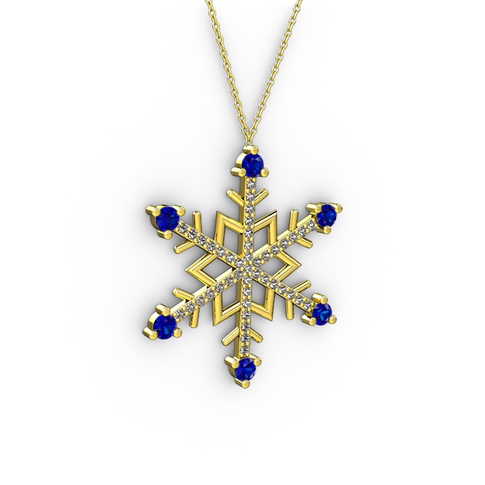 Lab safir ve dumanlı kuvars 8 ayar altın kolye (40 cm altın rolo zincir)