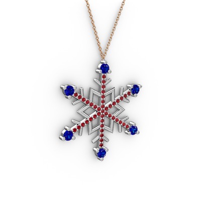 Lab safir ve garnet 18 ayar beyaz altın kolye (40 cm gümüş rolo zincir)