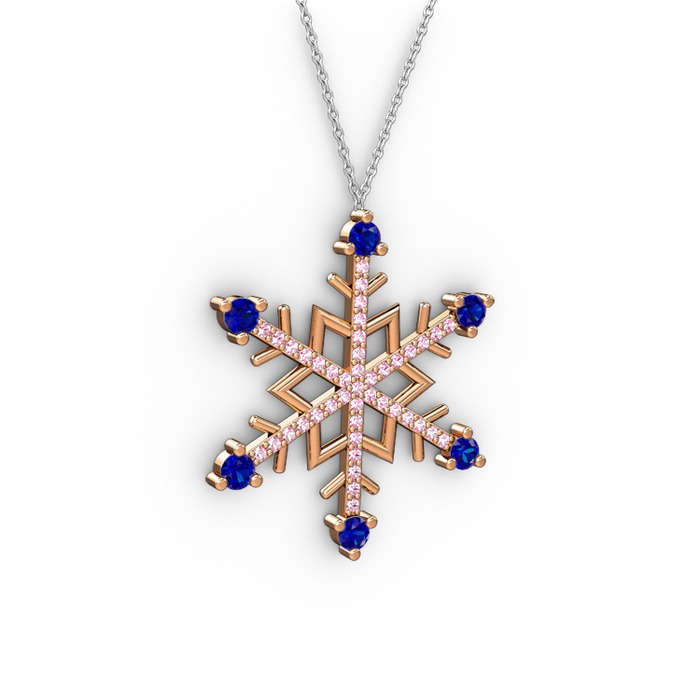 Lab safir ve pembe kuvars 14 ayar rose altın kolye (40 cm beyaz altın rolo zincir)