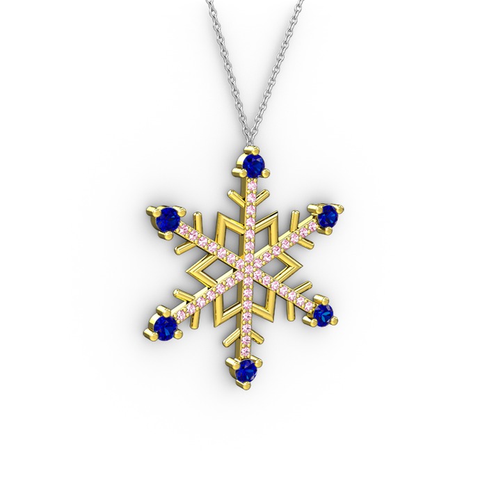 Lab safir ve pembe kuvars 18 ayar altın kolye (40 cm beyaz altın rolo zincir)