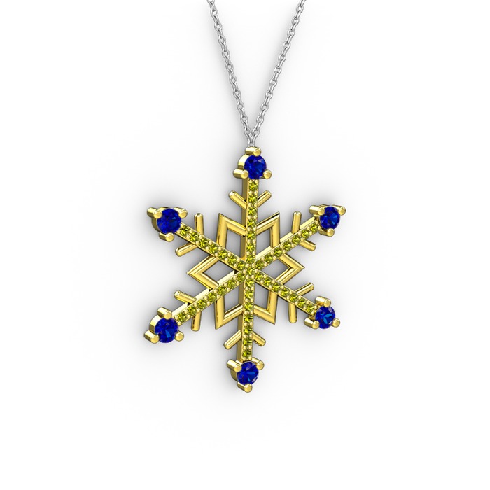 Lab safir ve peridot 18 ayar altın kolye (40 cm beyaz altın rolo zincir)