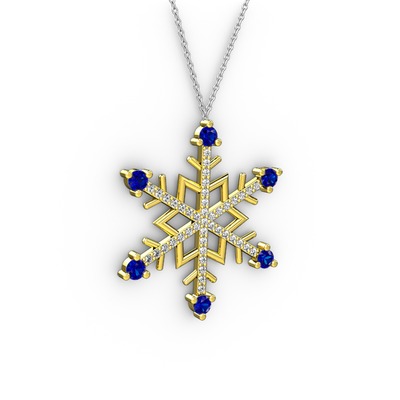 Lab safir ve pırlanta 18 ayar altın kolye (0.473 karat, 40 cm beyaz altın rolo zincir)