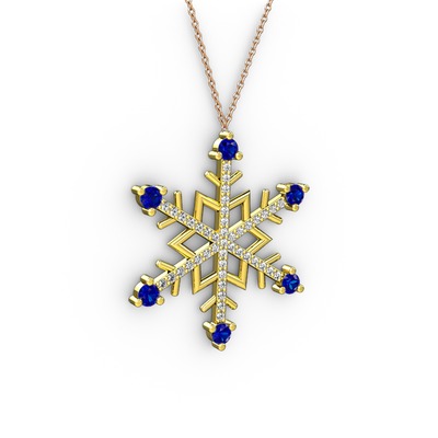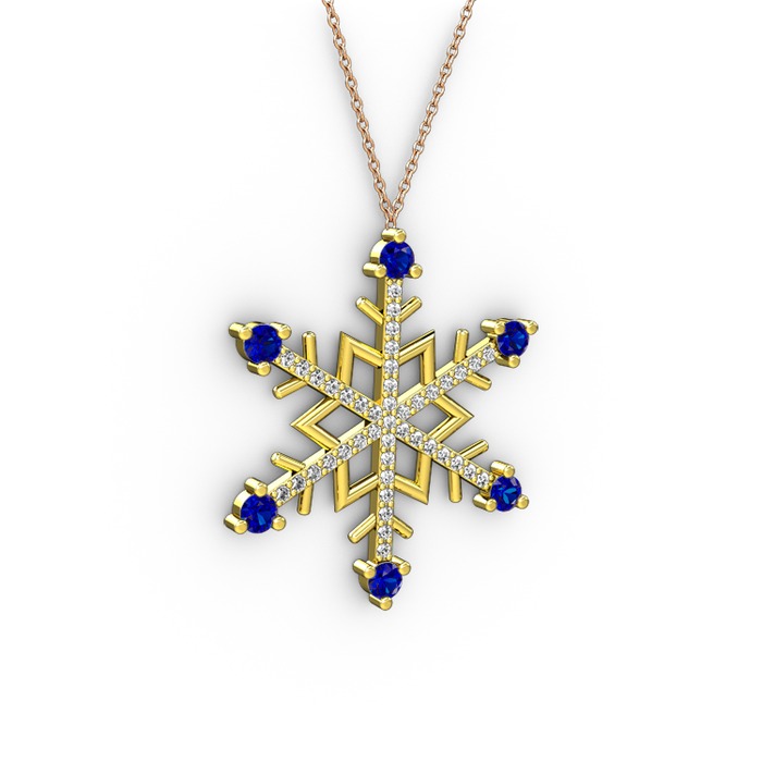 Lab safir ve pırlanta 18 ayar altın kolye (0.473 karat, 40 cm rose altın rolo zincir)