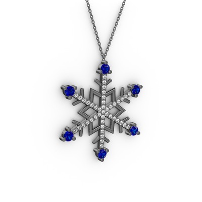 Lab safir ve pırlanta 925 ayar siyah rodyum kaplama gümüş kolye (0.473 karat, 40 cm gümüş rolo zincir)