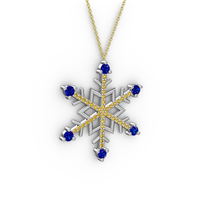 Lab safir ve sitrin 14 ayar beyaz altın kolye (40 cm gümüş rolo zincir)