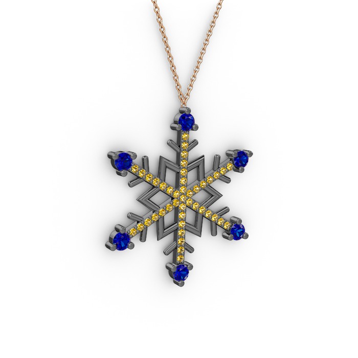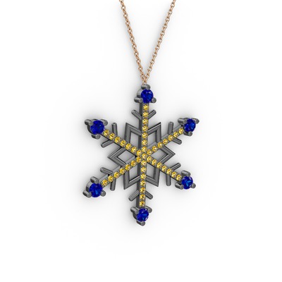 Lab safir ve sitrin 925 ayar siyah rodyum kaplama gümüş kolye (40 cm gümüş rolo zincir)