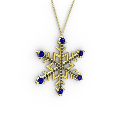 Lab safir ve siyah zirkon 18 ayar altın kolye (40 cm altın rolo zincir)
