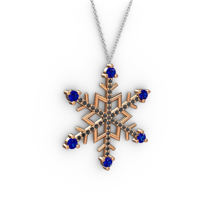 Lab safir ve siyah zirkon 18 ayar rose altın kolye (40 cm beyaz altın rolo zincir)