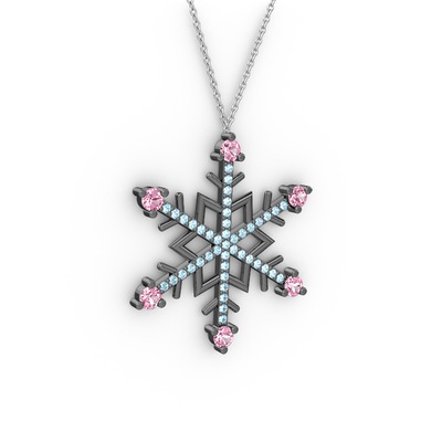 Pembe kuvars ve akuamarin 925 ayar siyah rodyum kaplama gümüş kolye (40 cm beyaz altın rolo zincir)