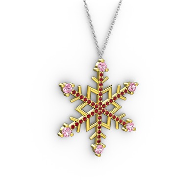 Pembe kuvars ve garnet 18 ayar altın kolye (40 cm beyaz altın rolo zincir)