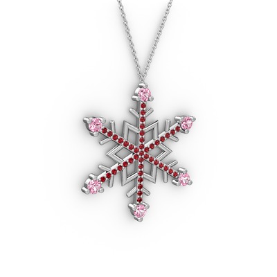 Pembe kuvars ve garnet 18 ayar beyaz altın kolye (40 cm beyaz altın rolo zincir)