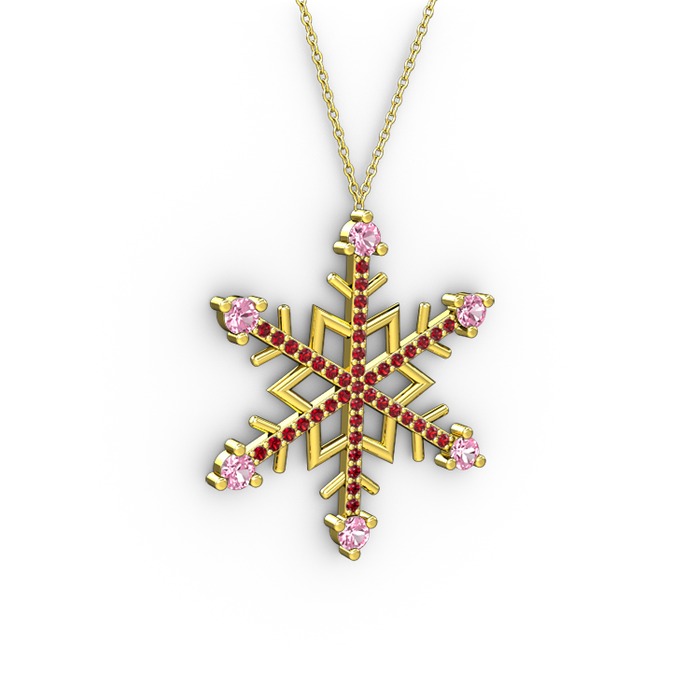 Pembe kuvars ve garnet 8 ayar altın kolye (40 cm gümüş rolo zincir)
