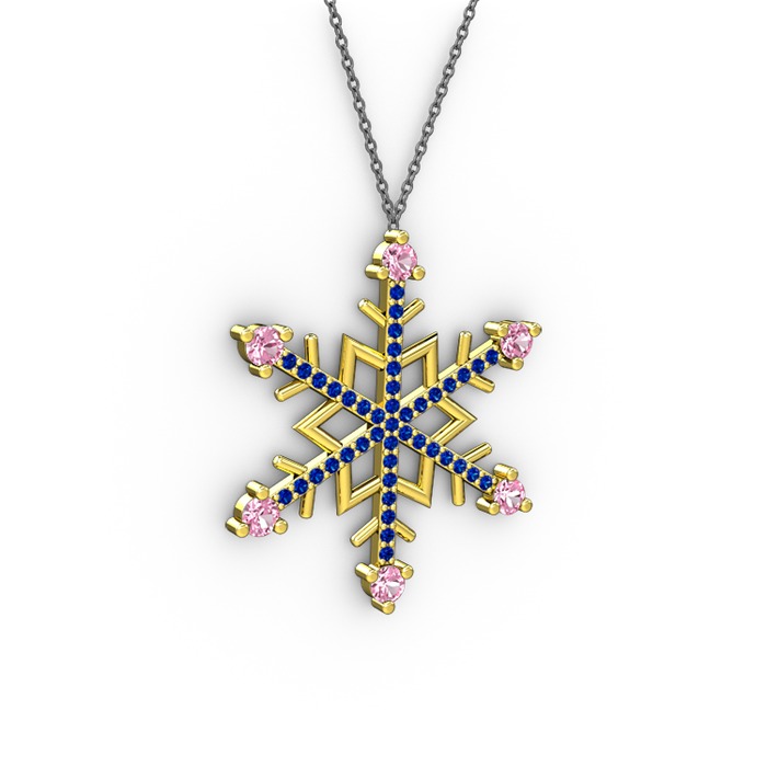 Pembe kuvars ve lab safir 14 ayar altın kolye (40 cm gümüş rolo zincir)