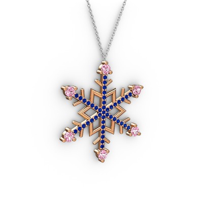 Pembe kuvars ve lab safir 8 ayar rose altın kolye (40 cm beyaz altın rolo zincir)