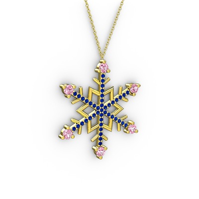 Pembe kuvars ve lab safir 925 ayar altın kaplama gümüş kolye (40 cm gümüş rolo zincir)