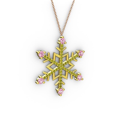 Pembe kuvars ve peridot 8 ayar altın kolye (40 cm rose altın rolo zincir)