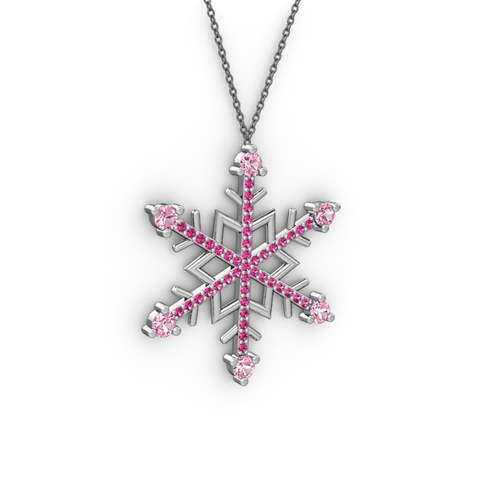 Pembe kuvars ve rodolit garnet 8 ayar beyaz altın kolye (40 cm gümüş rolo zincir)