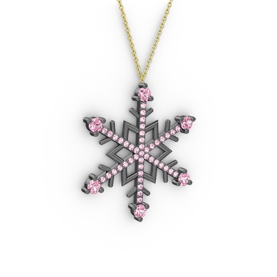 Pembe kuvars 925 ayar siyah rodyum kaplama gümüş kolye (40 cm altın rolo zincir)