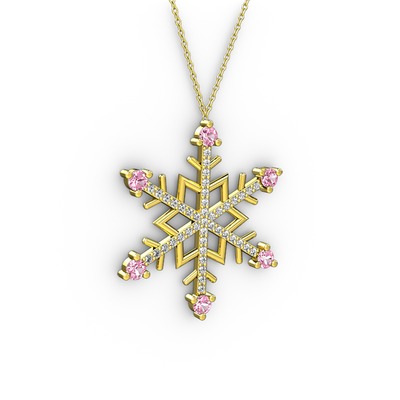 Pembe kuvars ve swarovski 18 ayar altın kolye (40 cm altın rolo zincir)