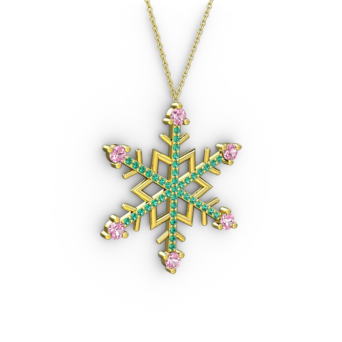 Pembe kuvars ve yeşil kuvars 18 ayar altın kolye (40 cm altın rolo zincir)