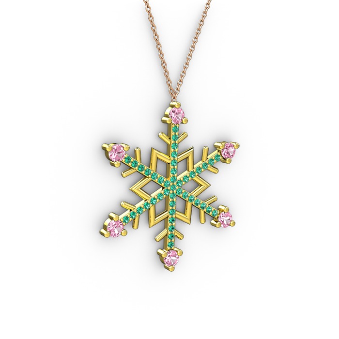 Pembe kuvars ve yeşil kuvars 18 ayar altın kolye (40 cm rose altın rolo zincir)