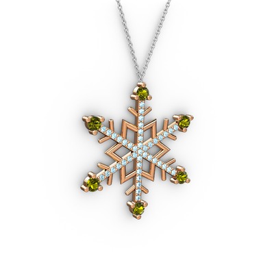 Peridot ve akuamarin 8 ayar rose altın kolye (40 cm gümüş rolo zincir)