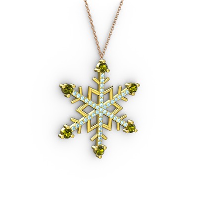 Peridot ve akuamarin 925 ayar altın kaplama gümüş kolye (40 cm rose altın rolo zincir)