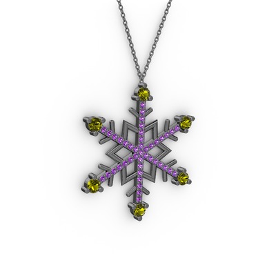 Peridot ve ametist 925 ayar siyah rodyum kaplama gümüş kolye (40 cm gümüş rolo zincir)