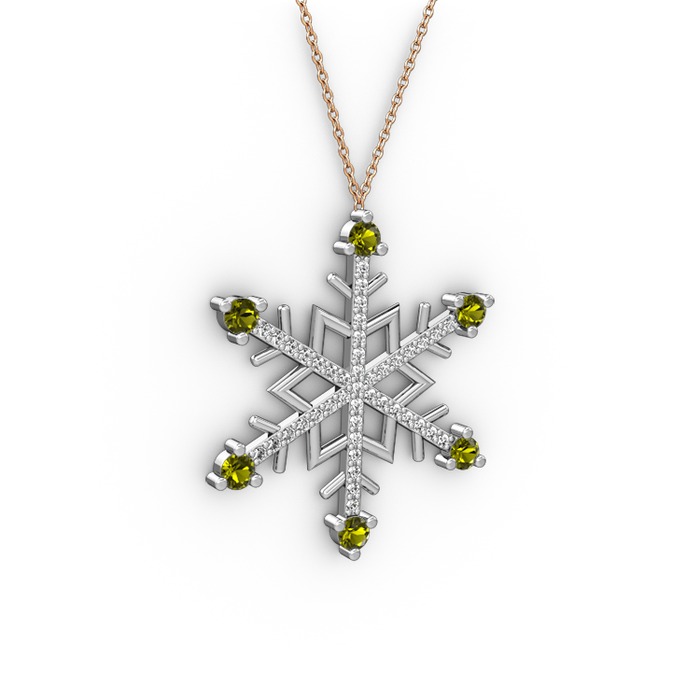 Peridot ve beyaz zirkon 925 ayar gümüş kolye (40 cm rose altın rolo zincir)