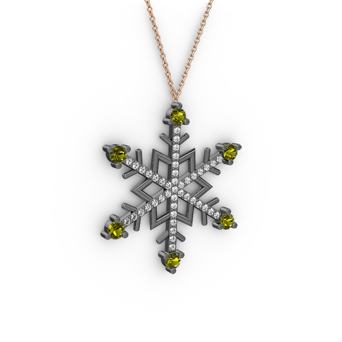 Peridot ve beyaz zirkon 925 ayar siyah rodyum kaplama gümüş kolye (40 cm gümüş rolo zincir)