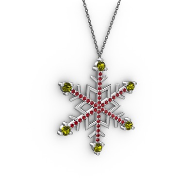 Peridot ve garnet 18 ayar beyaz altın kolye (40 cm gümüş rolo zincir)