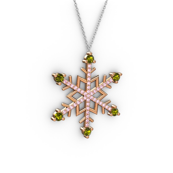 Peridot ve pembe kuvars 8 ayar rose altın kolye (40 cm beyaz altın rolo zincir)
