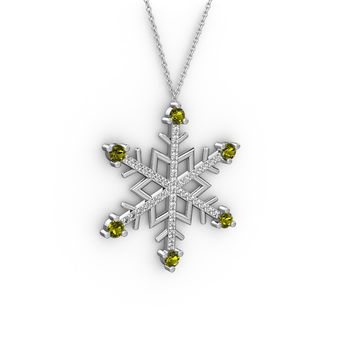 Peridot ve pırlanta 18 ayar beyaz altın kolye (0.473 karat, 40 cm beyaz altın rolo zincir)